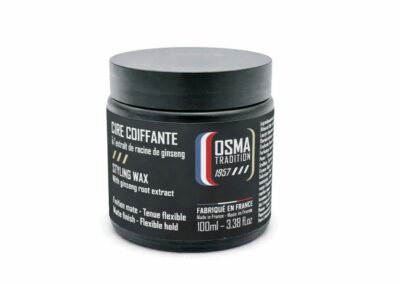 Formulée à base d’extraits de ginseng et de guarana, associés au kaolin, la cire coiffante Osma Tradition apporte texture et définition à la coiffure sans alourdir le cheveu. Sa texture souple permet de structurer les cheveux tout en conservant un rendu naturel, sans effet gras ni résidu.
