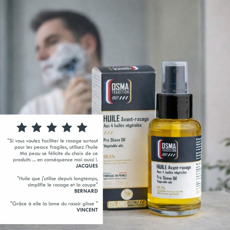 Les points forts de l’huile avant rasage Osma Tradition :