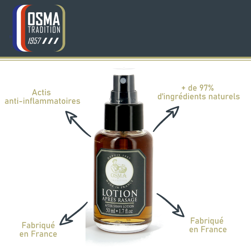 La lotion post rasage Osma Tradition se distingue par son parfum élégant et discret, aux notes boisées et épicées, laissant une empreinte olfactive subtile mais affirmée. Un vrai plus pour prolonger le plaisir du rasage.