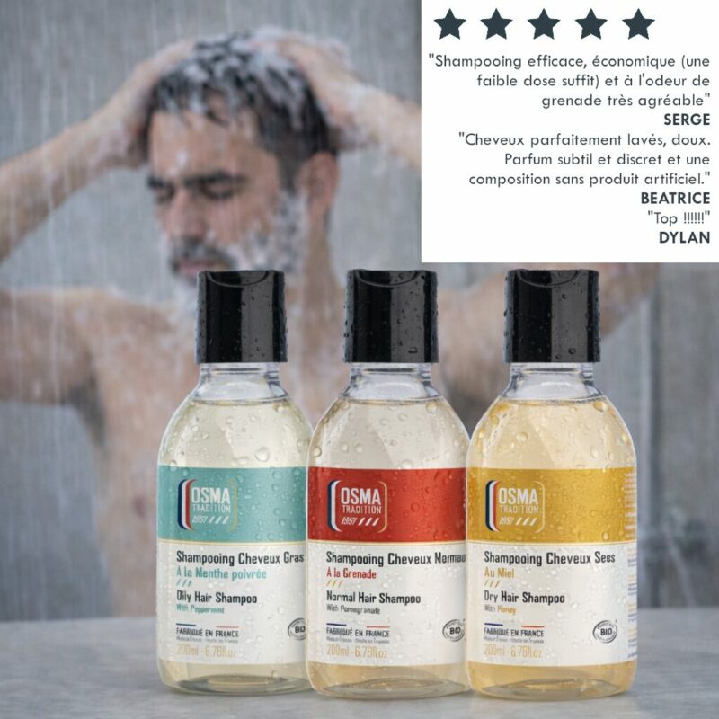 Découvrez les shampoings certifiés ECOCERT d’Osma Tradition, conçus spécialement pour les hommes qui exigent un soin respectueux de leur cuir chevelu et de l’environnement. Trois formules bio adaptées à chaque type de cheveux — normaux, secs et gras — offrent un nettoyage efficace, doux et sensoriel.